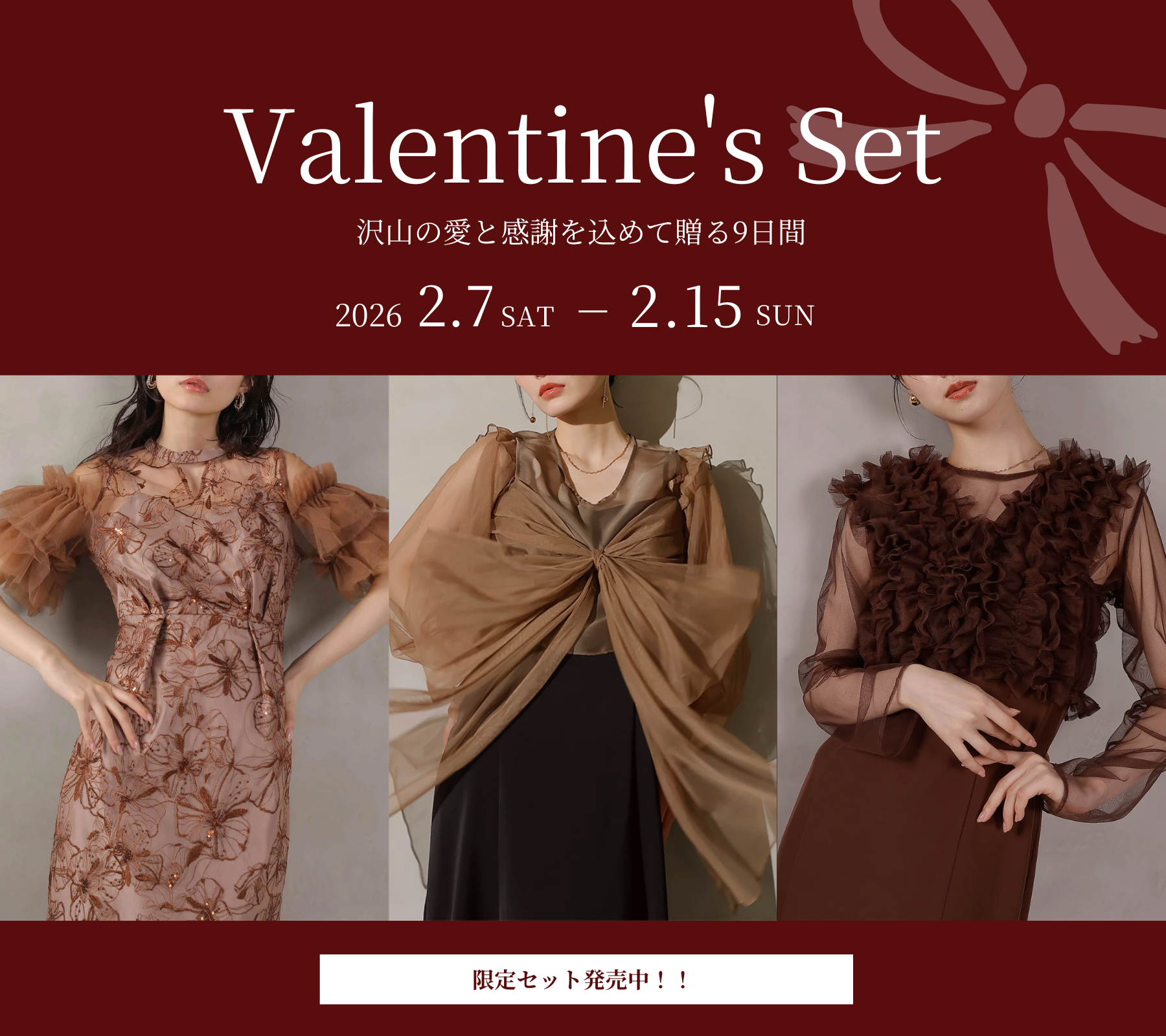 フラワー刺繍 袖リボン ドレス ワンピース