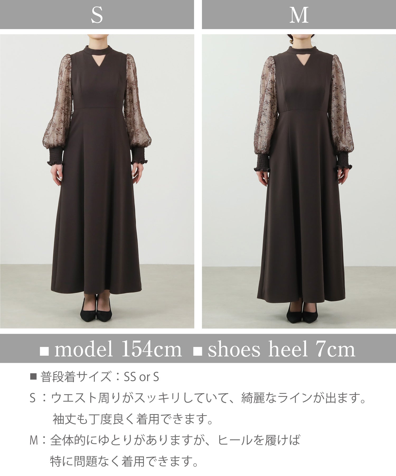 刺繍レース チュールスリーブ パーティードレス