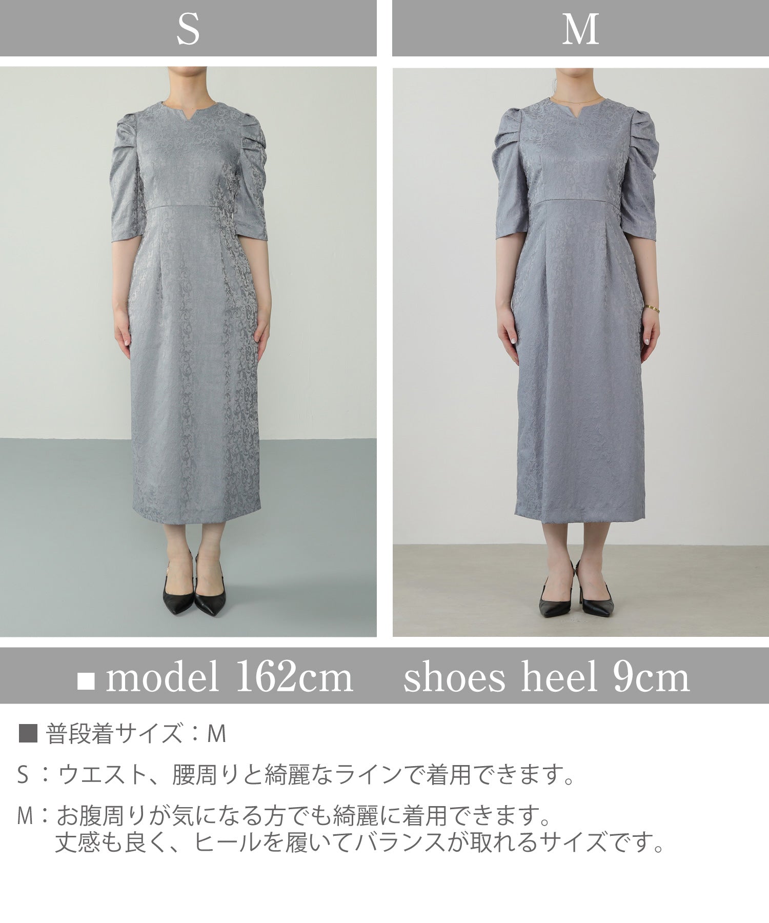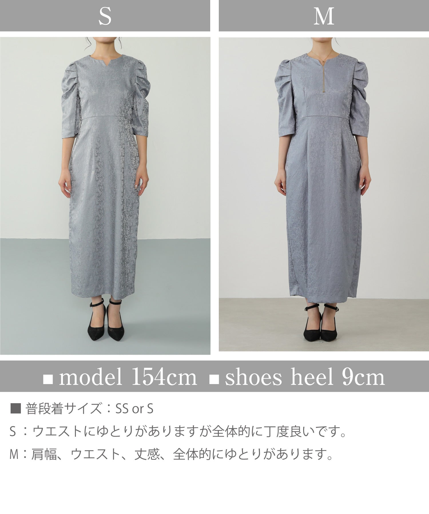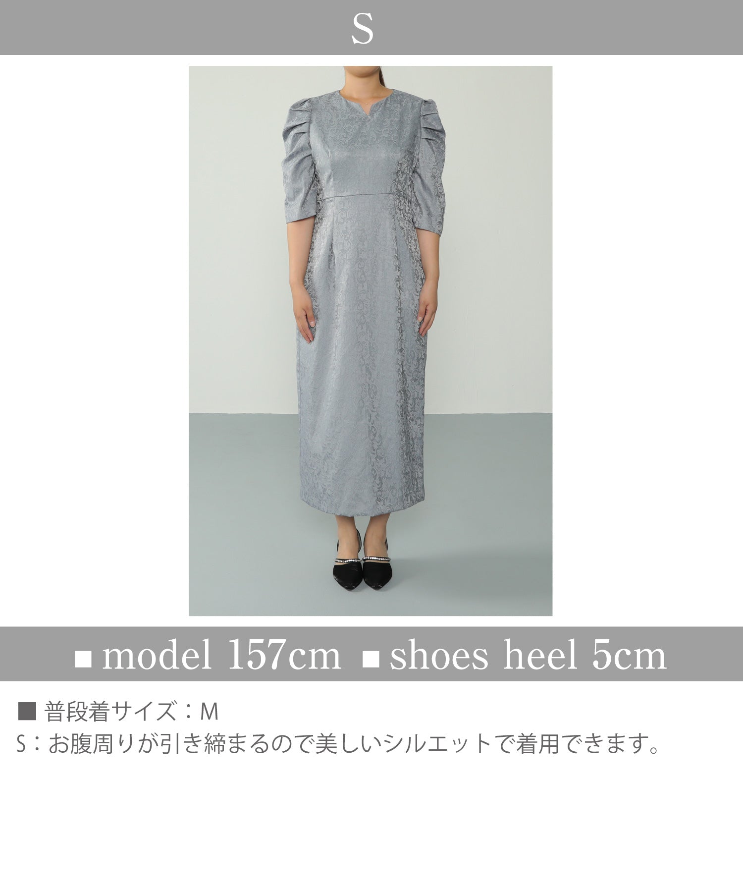 ジャガード パフスリーブ ワンピース 結婚式 お呼ばれ パーティー ドレス
