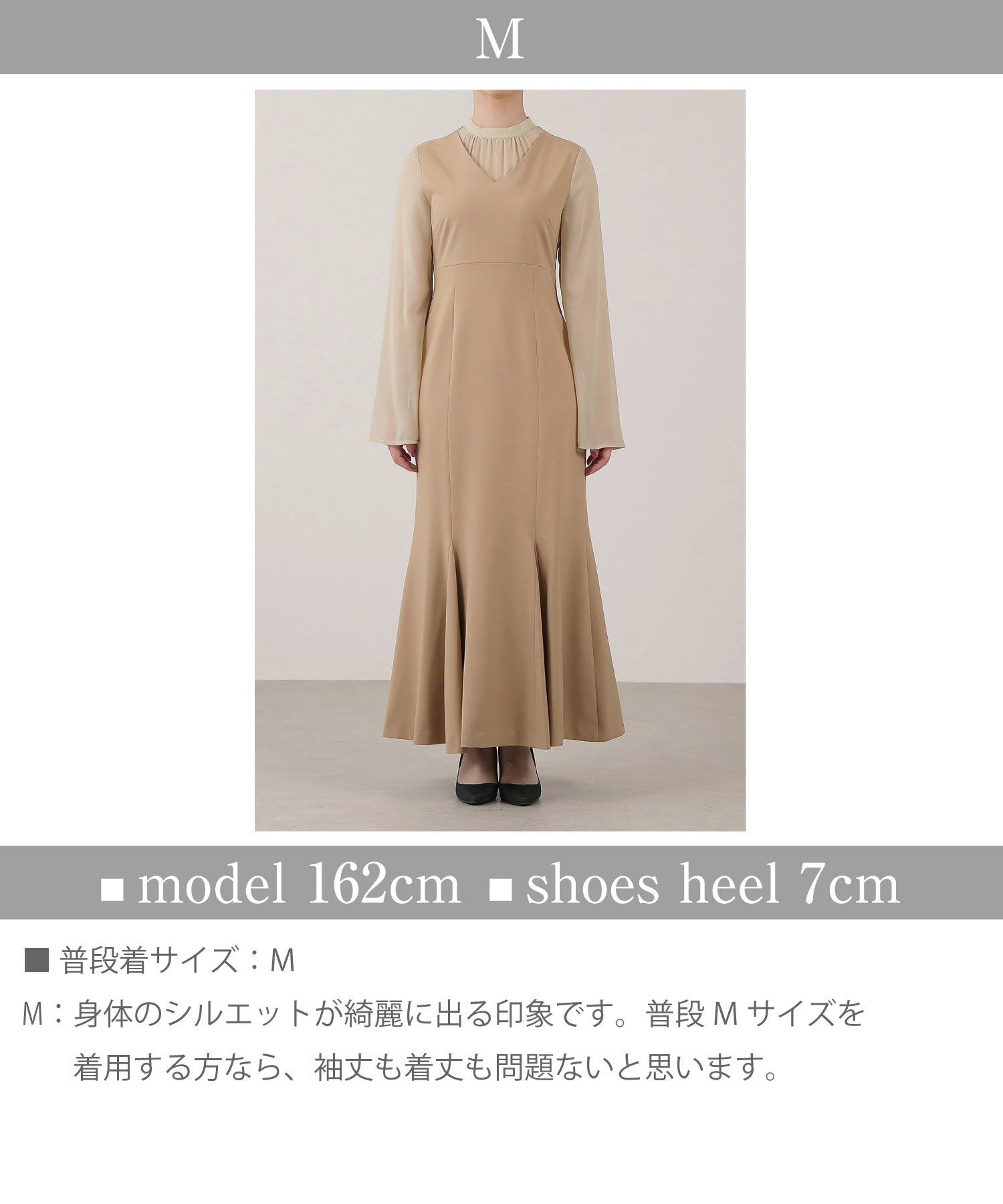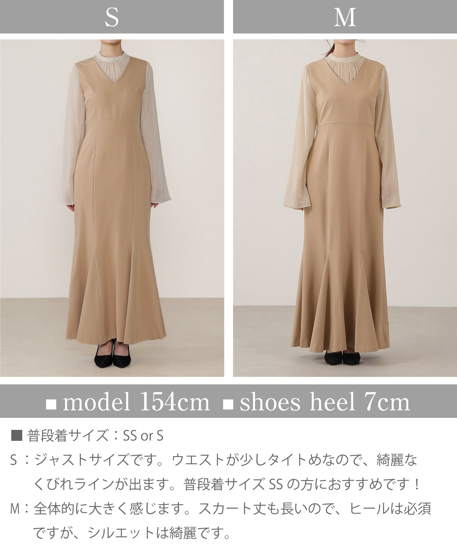 レイヤード風 スタンドカラーブラウス Vネック ワンピース ドレス