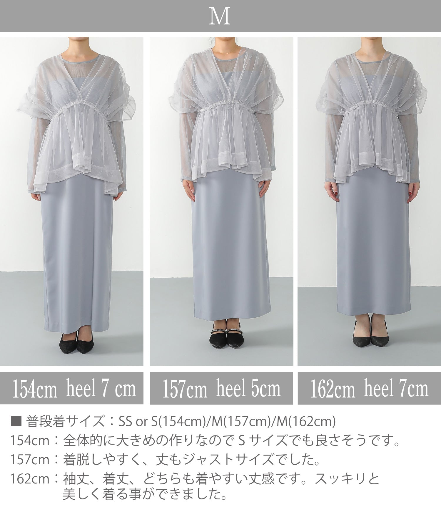 ・ふんわり軽いチュール素材のケープとセミタイトな