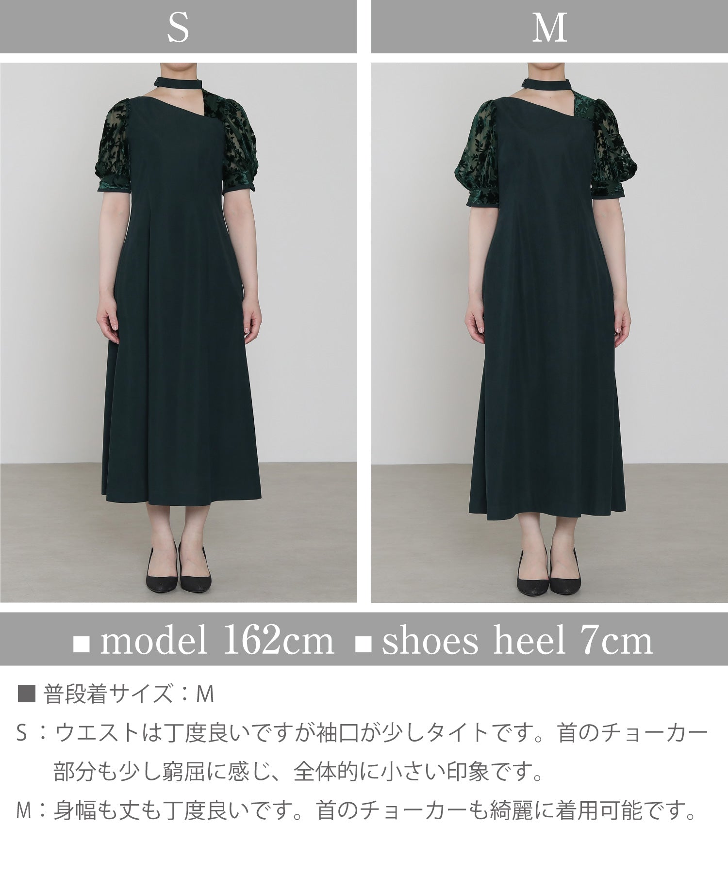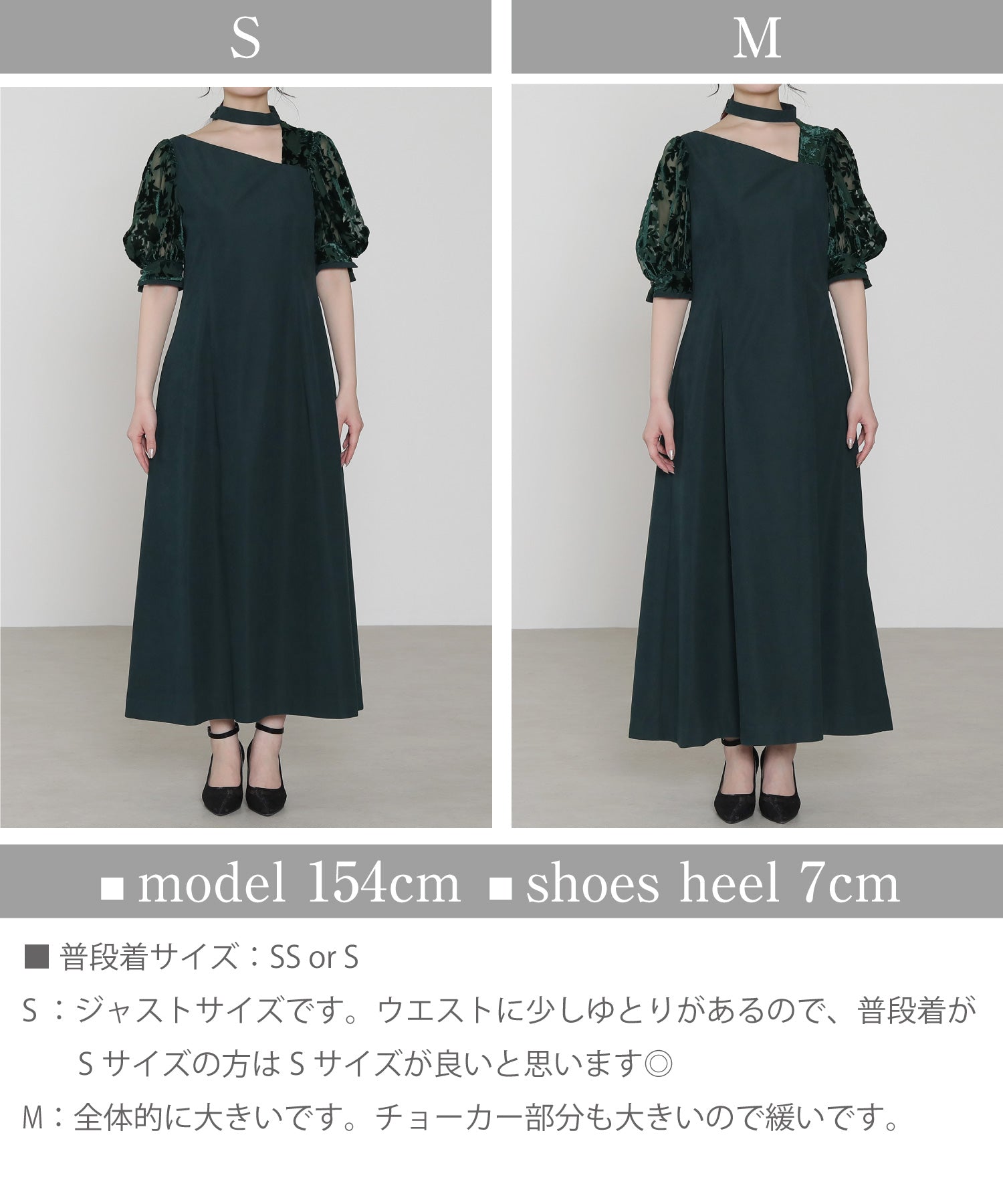 ・首はドレスと同じ生地のチョーカー風のデザインでワンポイント